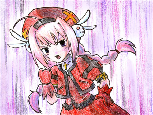about: Art trade with bleu. Vita from Mahou Shoujo Lyrical Nanoha A's, butchered by my incompetency with colored pencils. ...and traditional media in general. xP