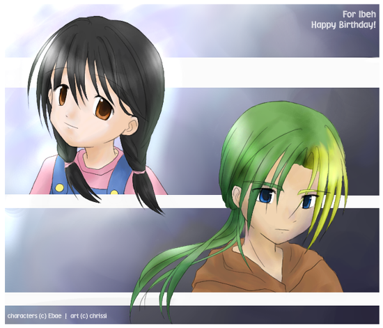 about: A birthday gift for my friend, Ebae, who was turning 14. I attempted to draw two characters, May and Sanreo, from her online manhwa.